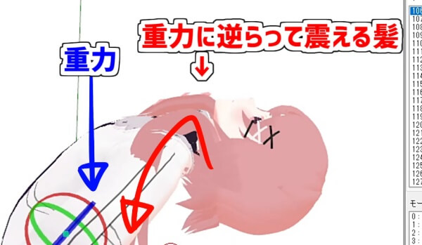 VRoid製の3DモデルをMMD用に変換した際に、髪の毛が姿勢によって重力に逆らってしまうことがあります。