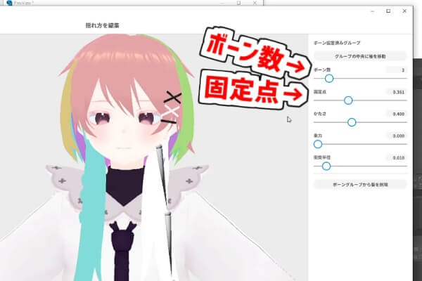 ボーン数は、長い髪でも3程度で十分です。