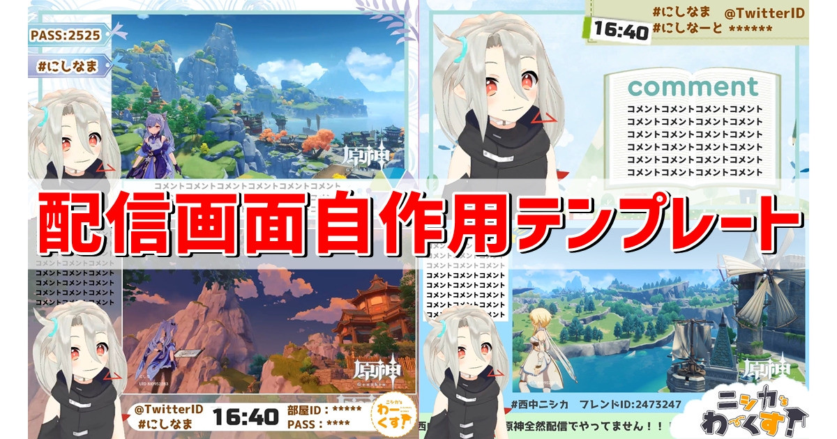 ペイントソフト不要、OBS上で作成できる配信画面のテンプレートです。