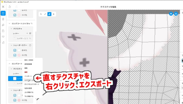 該当のテクスチャを右クリックし、「エクスポート」で保存します。