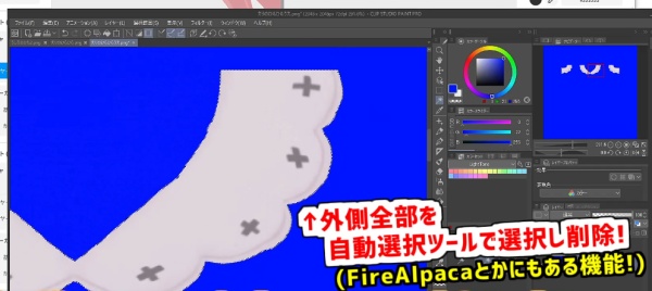 軽微な修正であるからと「VRoidStudio」で直接描き込み修正した箇所の輪郭が、PMXに変換するとすべて見えるようになります。