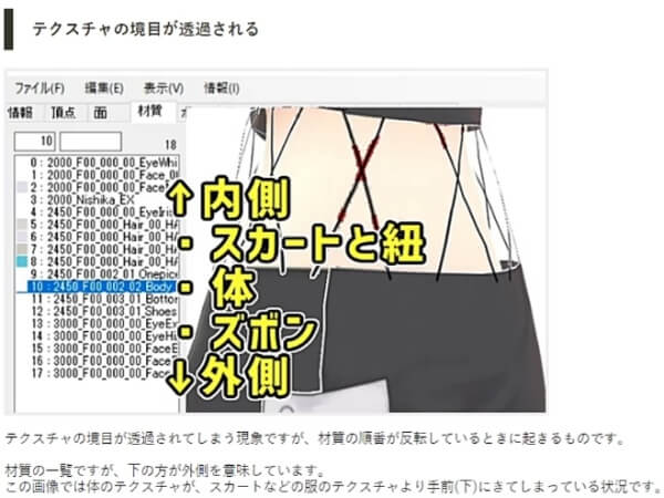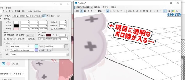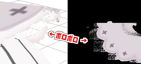 こちらもVRMでは問題にならなかった、テクスチャに半透明のゴミが残っていることが原因で発生する問題です。