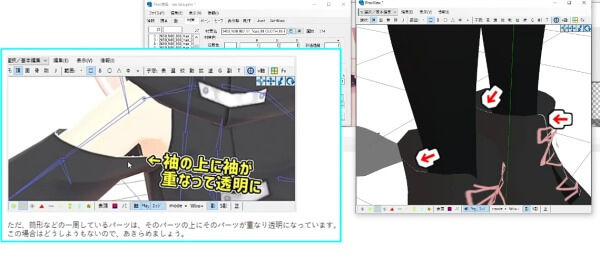 しかし、MMD用のPMX形式に変換するとその処理がなくなり、薄い部分も含めてすべて表示されてしまいます。