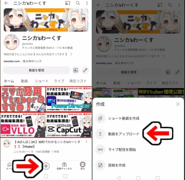 YouTubeに投稿する動画へサンプリング機能を使用する場合は、スマホから動画をアップロードする必要があります。
