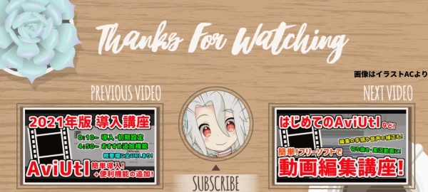 〆のあいさつ中の字幕を被らない位置に表示したり、〆の後尺を余らせることでも問題なく表示できるので必須ではありませんが、あるとチャンネルのイメージをより強く伝えることができます。
