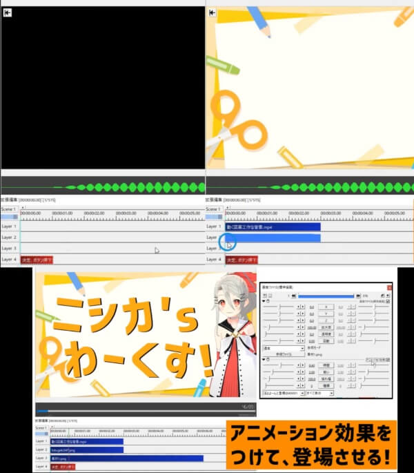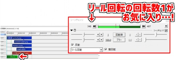 「シーンチェンジ」を使用するのも、まとめて動かすことができて便利です。