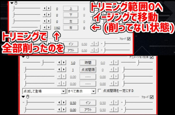「トリミング」と「イージング」を組み合わせることで徐々に表示したり、「点滅して登場」を使用して表示させたりするのもオシャレな雰囲気にできます。