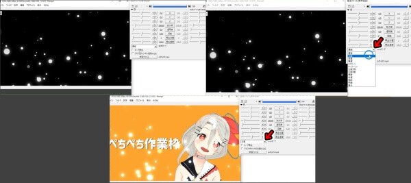 Aviutlの「アニメーション効果」より、さつき氏の配布しているスクリプト、パーティクル再現を利用することで、お手軽に好きな画像をたくさん降らせることができます。