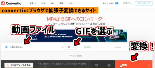 編集ソフトを使うのが面倒だと感じる場合は、拡張子変換ができるサイトなどを利用し、動画素材の拡張子をGIFに変換してください。