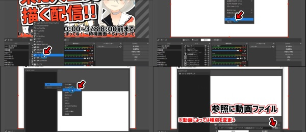 OBSの「参照」ボタンを押して、使いたいものを選ぶことで素材を差し替えることができます。