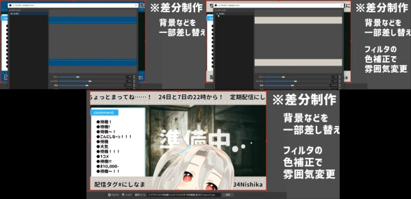 配信ごとに雰囲気を変えたい場合は、簡単に差し替えできるものを作っておくと楽になると思います。