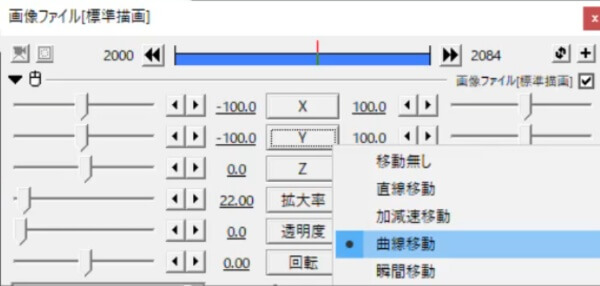 素材を単体で動かしたい場合は「曲線移動」が便利です。