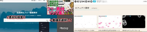 素材を探す場合は、PixabayやOKUMONO+Vがおすすめです。