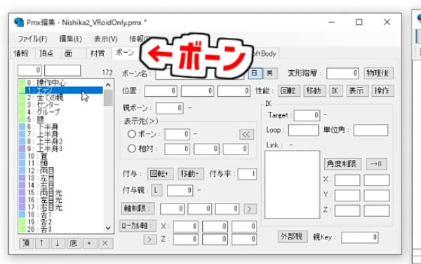 PMXEditorでのボーンの追加・修正
