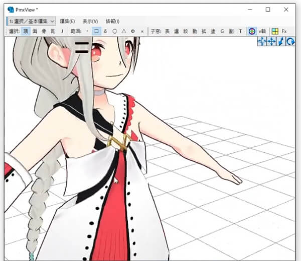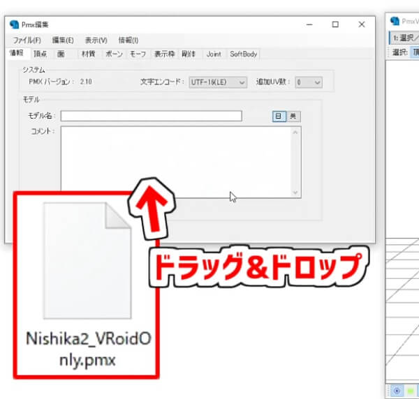 変換されたPMXファイルを「PMXEditor」に読み込みます。