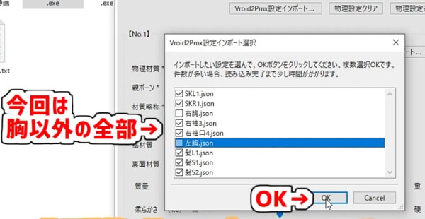 物理演算を付けたいパーツにチェックを入れて「OK」をクリックします。