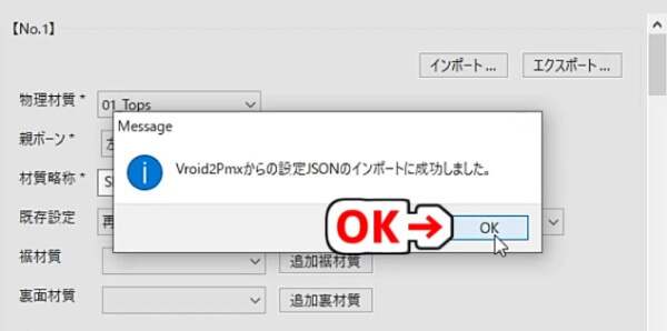 インポートの成功を確認したら「OK」を押します。