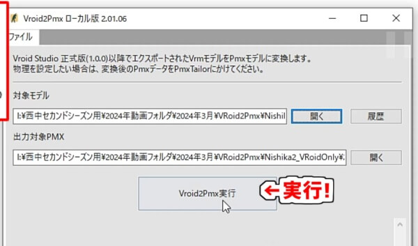 「VRoid2Pmxを実行」をクリックすると変換が始まります。