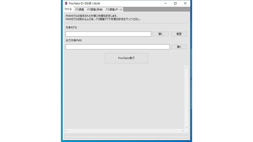 「PmxTailor.exe」をダブルクリックして起動します。