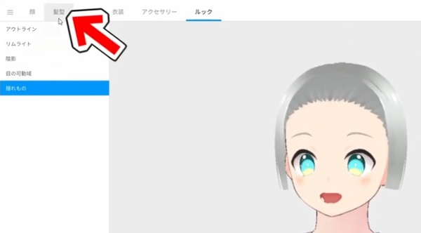 髪型を編集へ進む前に、髪にはシェーダーカラーを多少使いたいので、「ルック」をクリックして設定しておきましょう。