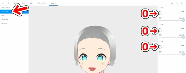 リムライトの項目はすべて0で設定します。