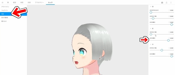 個人的な好みですが、髪の影の硬さは0にしています。