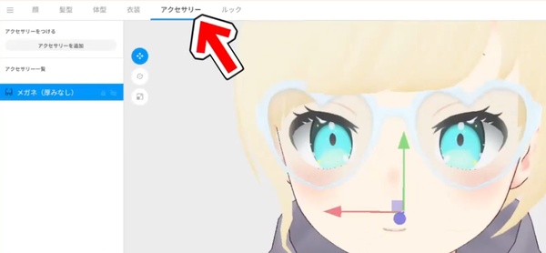 「アクセサリー」で眼鏡などのアイテムを追加することもできます。
