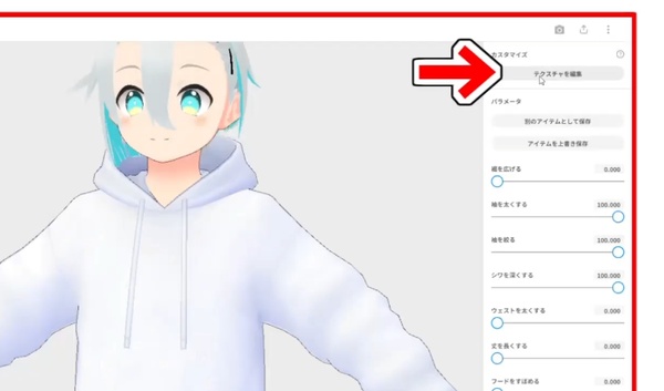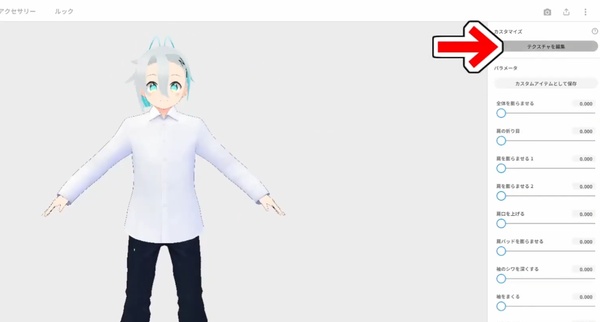 ベースにする服を選んだら、「テクスチャを編集」をクリックします。