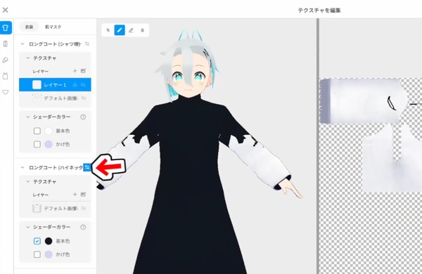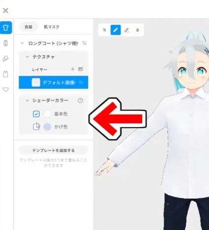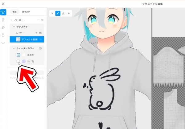 衣装の調整でもシェーダーカラーは解除しておきます。