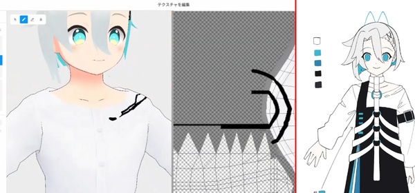 細かい柄や色は最終的にペイントソフトで描くため、VRoid上では簡単にあたりだけ取っておきます。