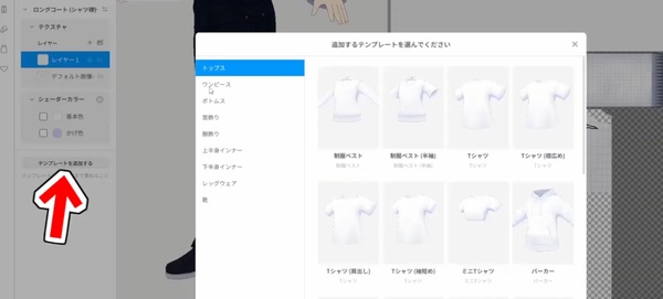 衣装の制作「テクスチャのあたりを描く・テンプレートの追加」