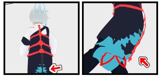 シッポベルトは一枚の服で作成すると、首の輪っか部分が浮いてしまったり、垂れるベルトの形が体に沿ってガタガタしてしまったりしたため、プリセットを分けて組み合わせてみました。