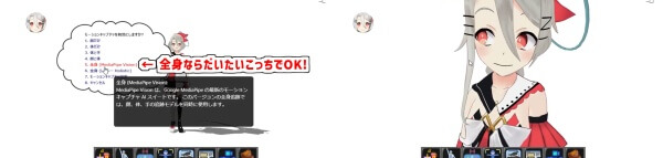 今回は手も顔も体も動かしたいので、「全身(MediaPipeVision)」をクリックしました。