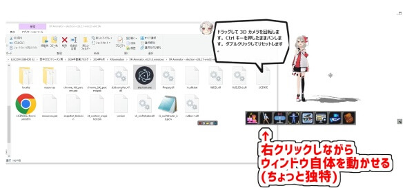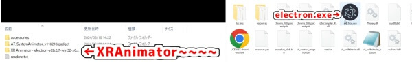 中に入っている「XR Animator〜」フォルダ内の、「electron.exe」をダブルクリックして起動します。