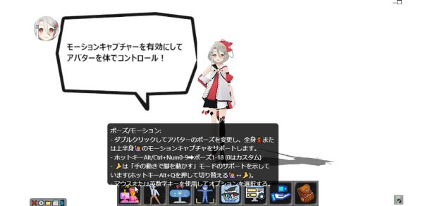 上半身だけのトラッキングはもちろん、座った状態でも動かすことができるソフトです。